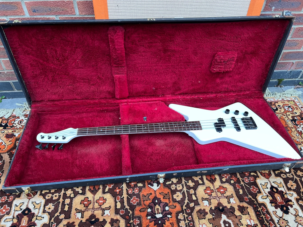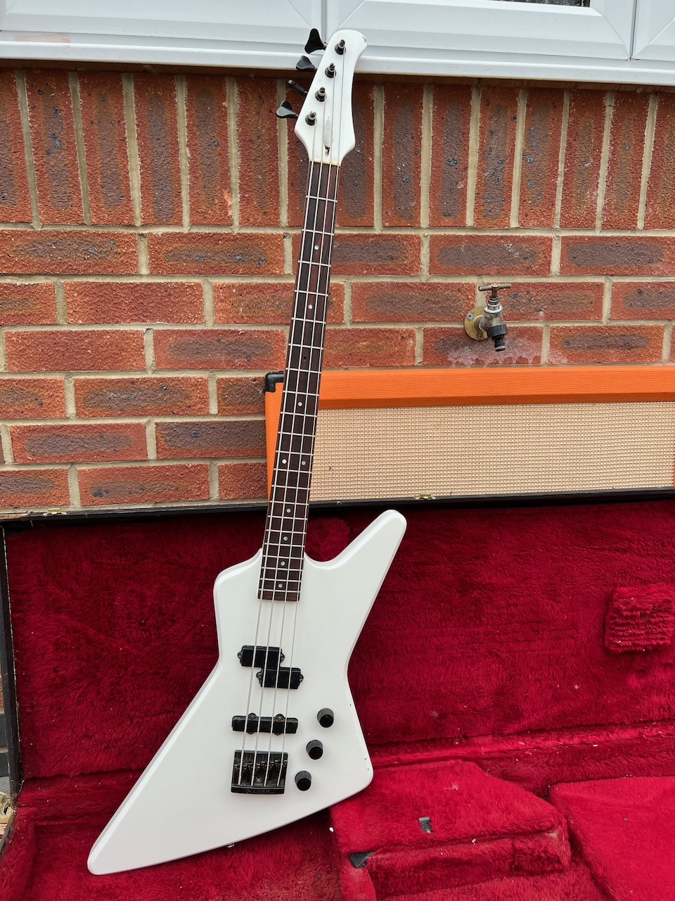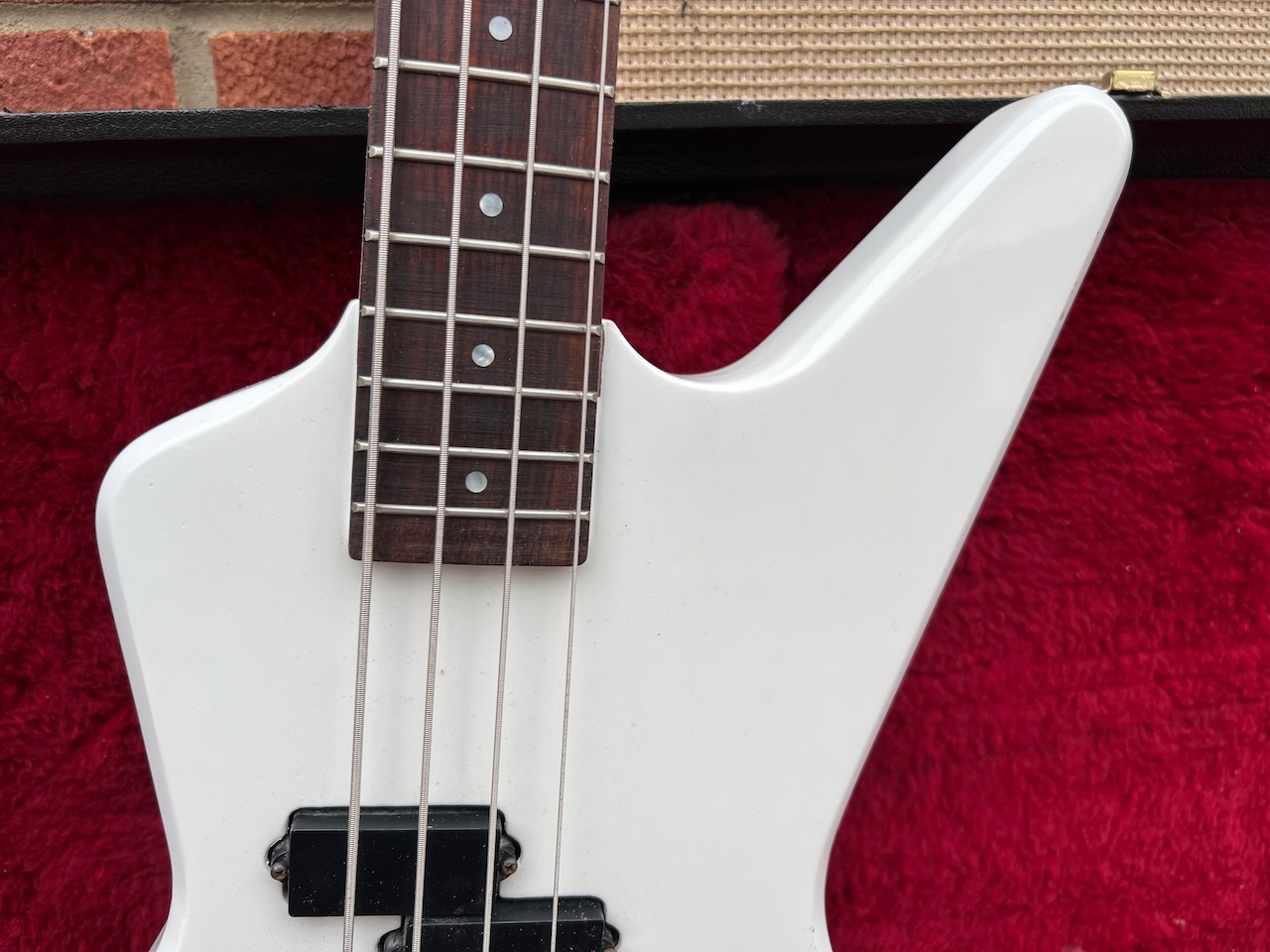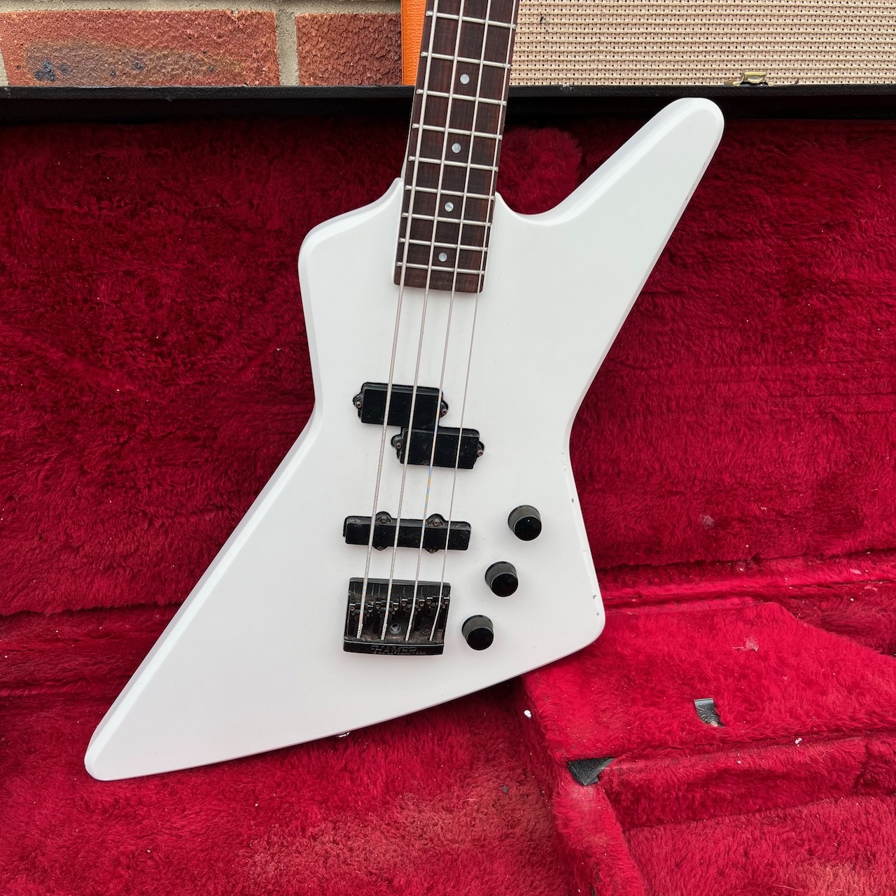 Vintage 1980s Hamer USA Blitz White Bass Guitar OHSC
